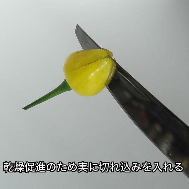 実の大きさにより中に入っている種子の数を予想して実の数は1個〜2個くらいの間で個数を調整して合計で種子が5粒以上採れる分量にてお送りします。